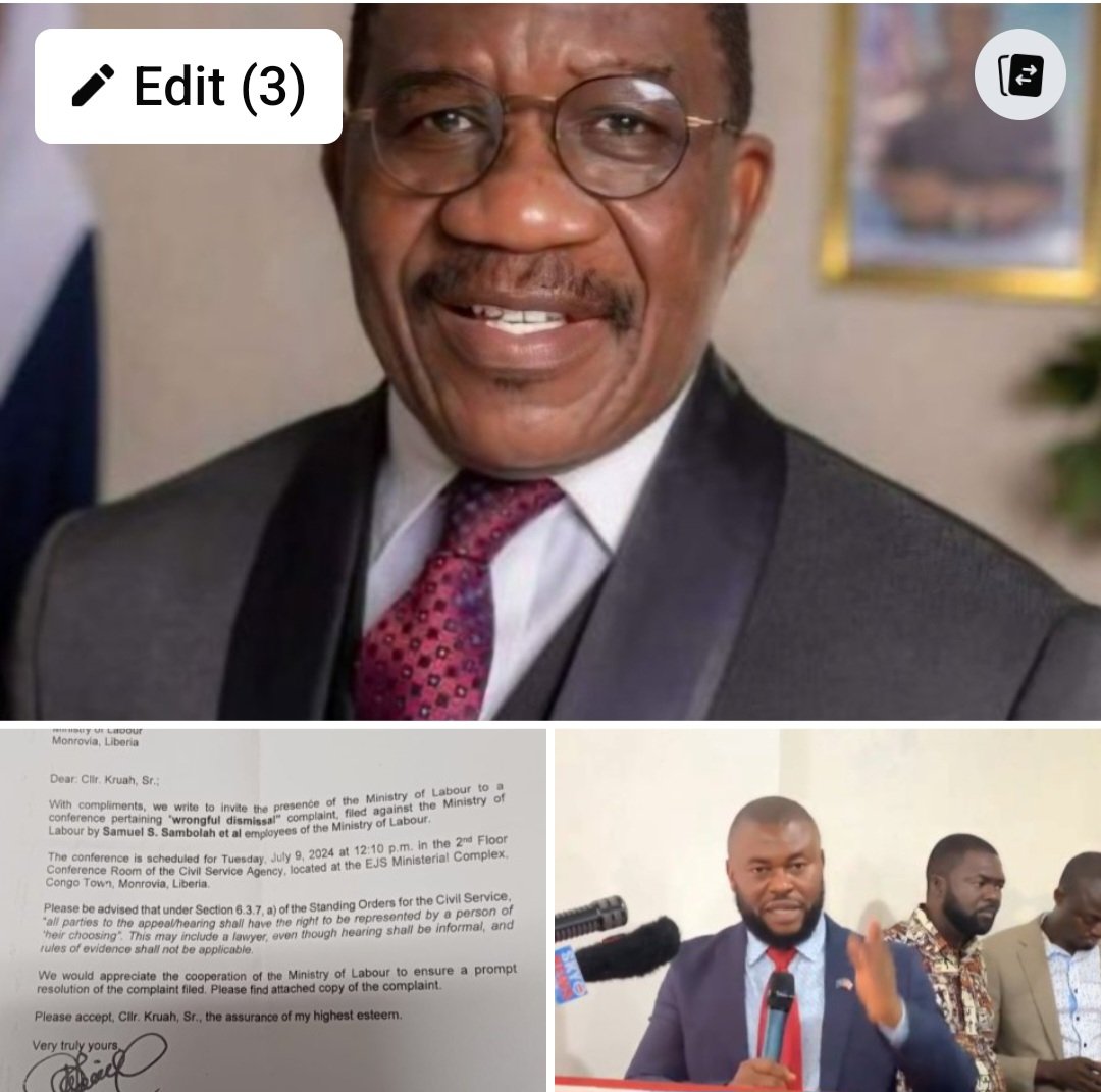 The hearing expected to be held on Tuesday, July 9, 2024, at the EJS Ministerial Complex in Congo, is expected to see Cllr. Kruah respond to complaint filed by Samuel Sambola S. Et. Al employees of the Ministry of Labor for alledged Wrongful Dismissal.